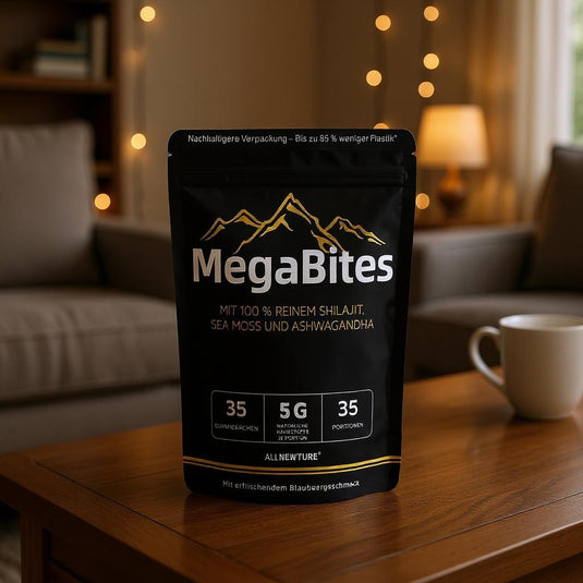 MegaBites enthalten eine kraftvolle Kombination aus natürlichen Zutaten wie Sea Moss, Ashwagandha und Shilajit, die zusammen deine Energie, Ausdauer und allgemeine Vitalität steigern.